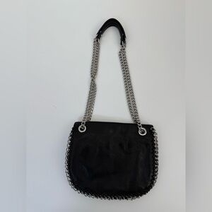Michael Michael Kors Black Leather Shoulder/Crossbody Chelsea Silver Chain Bag