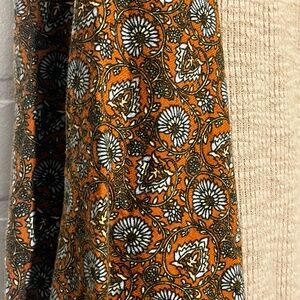 THML Womens Sweater Tan Navy Blie Orange Mixed Print Balloon Sleeve Large