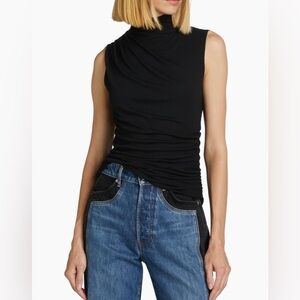 Veronica Beard Mylie Black Sleeveless Top, Ruched Side