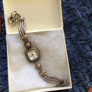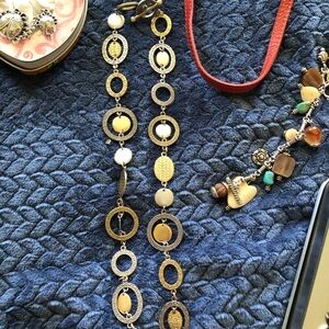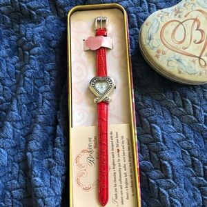 Elegant Brighton jewelry collection. Includes 2 chunky necklaces, 1 bracelet, 4 watches, one wallet on a strap, one leather/silver mirrored lipstick case and a ladybug brooch and all tins pictured. Several pieces are NWT. All watches work but need batteries. Check my “Not For Sale” items for additional information/descriptions of each piece. 2 of the watches have reversible features/straps. This is a lot of bang for your bucks! Can be bought to share amongst you and your friends or family or bought to start/boost your own collection or to buy for resale purposes.