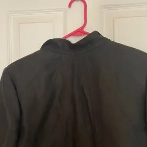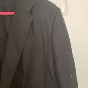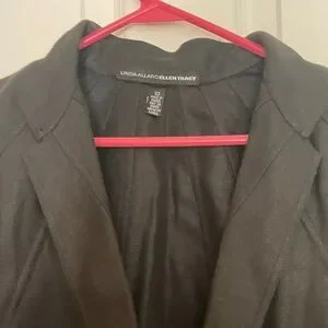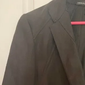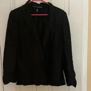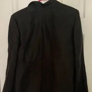 Elevate your wardrobe with this classic black women's blazer. Perfect for both professional and casual settings, this versatile piece is a must-have. 100% Linen. Note small spot on sleeve see picture. Jacket has shoulder pads