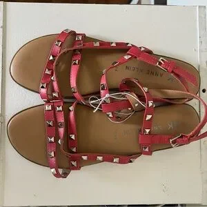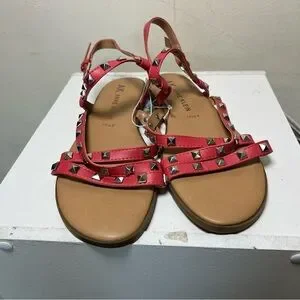 Like New Anne Klein Talulah Coral Pink Studded Flat Gladiator Sandals Sz 8.5