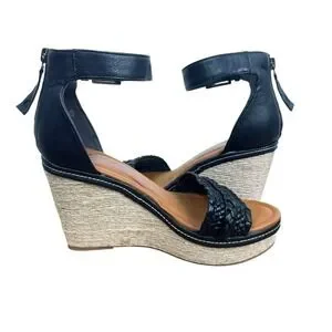 Zodiac Women's Sabeen Wedge Espadrille Sandal Woven Black Ankle Strap Size 8