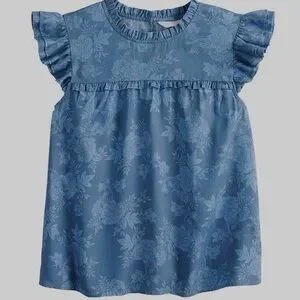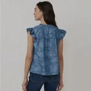 LC Lauren Conrad Ruffle High-Neck Blouse Blue Floral Size XXL