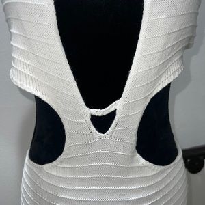 Elegant white maxi dress. Features stylish cut-out design. Perfect for any occasion.