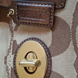 Coach Brown Tote Bag with Scarf Accent