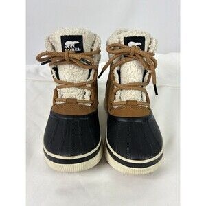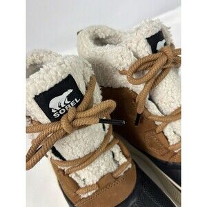 Sorel Out N About III Classic Winter Duck Boots Tan Suede Black Rubber Faux Fur Lining 6.5