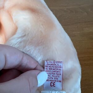 The softest plush Ty beanie Buddy. Knuckles is a pig with a blue bow. Tush and ear tags still attached. Ear tag has some creasing. He does have one mark by his tush!
