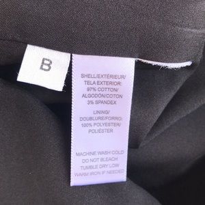 Middle Back Hidden Zipper with hook & eye closure. Back Slit 5” Fully lined Light weight. Shell: 97% Cotton 3% Spandex Lining 100% Polyester Approximate Measurements