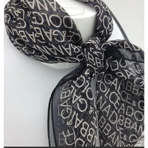 Authentic Dolce & Gabbana Square Signature Black Sheer Silk Monogram Scarf