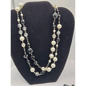 White House Black Market Black Clear & White Beaded Necklace w Bracelet