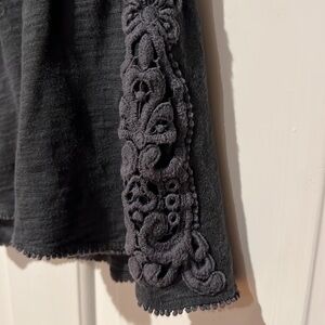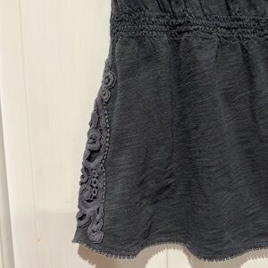 Delectable ( sold at Anthropologie). Size Medium. Lace at shoulders, neck and bust. Lace appliqué at bottom sides. Peplum style. Elastic waist. Cap sleeve.