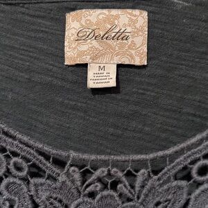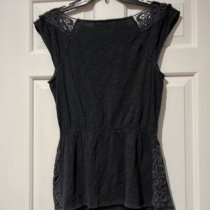 Deletta - Anthropologie- cap sleeve tee with lace trim.