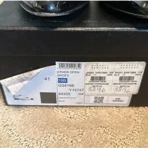 Elegant black leather flats with a glossy toe cap. Features an adjustable ankle strap. Ideal for stylish outings.