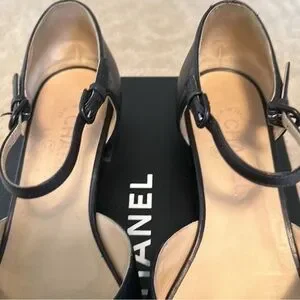 CHANEL Black Leather Flats with Glossy Toe Cap