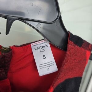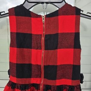Carter's Kid Red Black Plaid Girls Dress Sz 5 Lined 100% Cotton Side Bows
