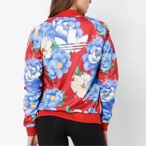 Adidas x Farm Rio Red and Blue Floral Print Jacket Size XS