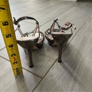 Elegant metallic heels with strappy design. Perfect for evening wear.