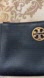 Chic Tory Burch crossbody with sleek black leather. Gold chain accents add elegance. Perfect for day or night.
