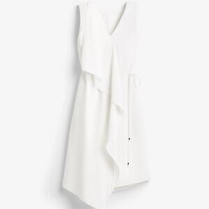 White House Black Market | NWT WHBM White Sleeveless Waterfall Ruffle Wrap Dress