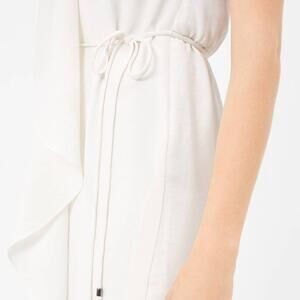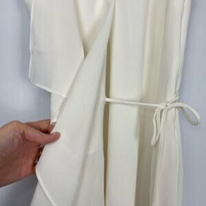 WHBM White Sleeveless Waterfall Ruffle V-neck Sleeveless Wrap Dress