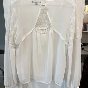 Romeo + Juliet Couture White Embroidered Sheer Blouse | Size Medium