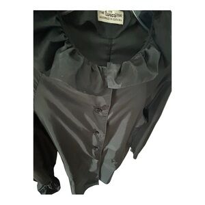 VTG The Tote's Coat Women's Raincoat Sz 10 Black Long Ruffle Collar Elastic READ