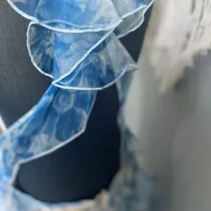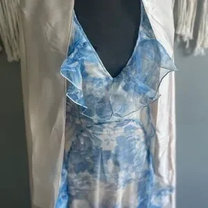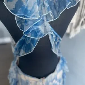 Alice McCall's "Oh My Goddess Dress" is beautifully cut from diaphanous silk organza printed with a delicate floral design. Featuring cascading ruffles throughout, this ethereal dress is underpinned by nude satin lining for coverage in all the right places. Ideal for everything from weddings to garden parties or formals. - Length: 158cm - Body-skimming silhouette - Lightweight, sheer silk organza - Blue floral print - V-neckline; hook and eye fastening to nape - Backless - Cascading ruffles throughout - Invisible zip fastening to back - Nude satin lining