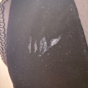 Flaws-minor rubbing on velvet shoulder from purse strap, left underarm deodorant mark, small mark under broach on sash, all documented in pictures
