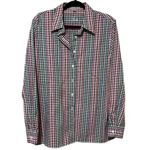 Foxcroft Women’s Multicolored Pink Green Blue White Plaid Button Down Blouse