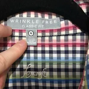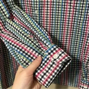 -Features: plaid, multicolored, classic fit.
