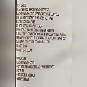Tumble dry (vest)/dry flat (hood)