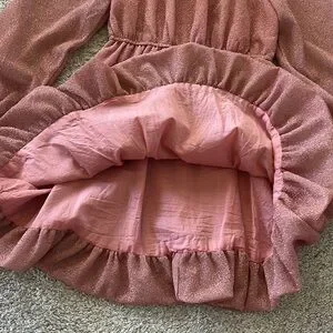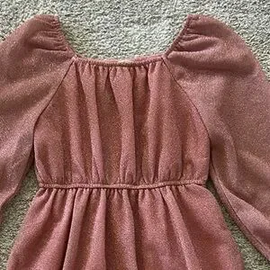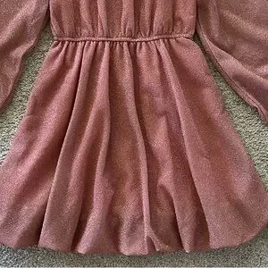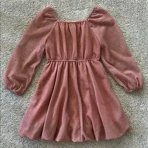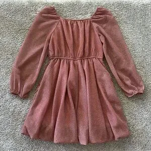 Hayden Girls Elegant Pink Metallic Dress. Charming pink kids dress with long sleeves, perfect for any occasion. Bubble hem. Square neckline. 100% polyester. Size M. Excellent condition.