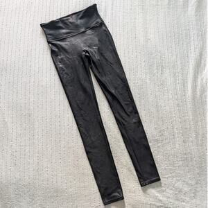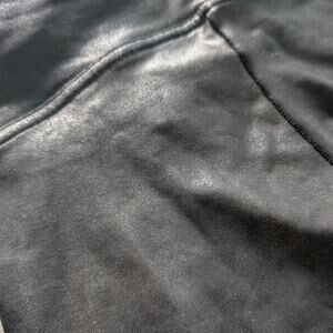These are not exactly faux leather, but have a nice shine to them! 87% nylon 13% spandex