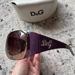 Y2K dolce and gabbana purple rhinestoned, sheilded one lense sunglasses. Straight out of a Y2K magazine these r unrealllllll. Minor wear/use for these baddies!! Includes original case! Take an up close look, and ask any questions!!