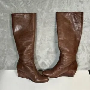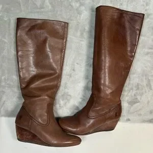 Frye missy tall leather wedge heel boots