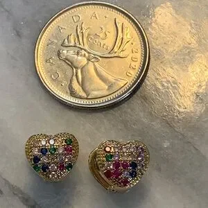 Gold colour copper and multicolour cubic zirconia heart earrings