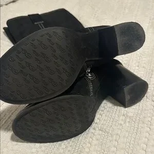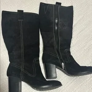 Step out in style with these elegant black suede boots. Perfect for any occasion, these boots offer both comfort and sophistication. Sit just below the knee. Size 9. Gently worn. Great condition!
