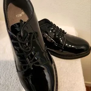 Uniform black patent shoes. Perfect for any military ball, band occasion, they offer both elegance and comfort.