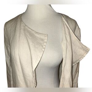 excellent used condition. raw linen has a unique and beautiful texture. pit to pit measures approximately 19.5/20” and full length about 30”