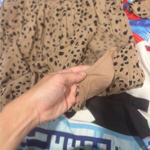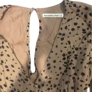 . Abercrombie & Fitch Animal Print Bell Sleeve V-Neck Romper M Waist Belt Smocking Tan Black 100% Viscose Lined Pre-Owned Excellent Condition