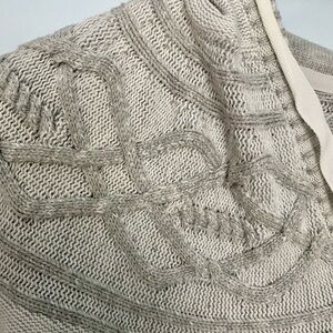 Chic V-neck hooded cotton sweater with textured knit pattern. Perfect for layering and casual outings.