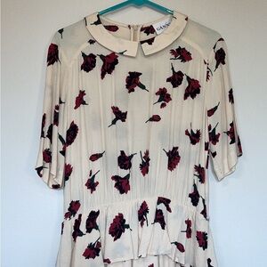 Ganni cream rose flower peplum dress