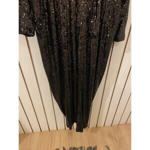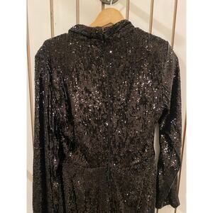 Turn heads in this stunning Express black sequin jumpsuit—the perfect blend of glam and sophistication! Featuring an all-over sequin design that catches the light beautifully, this sleek one-piece is designed for a figure-flattering fit with a cinched waist and wide-leg silhouette. The long sleeves and V-neckline add a touch of elegance, while the hidden back zipper ensures a seamless look.