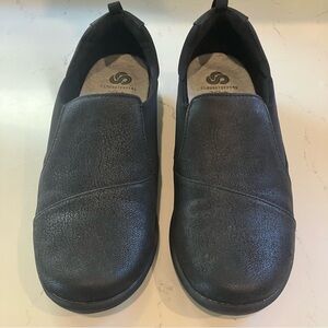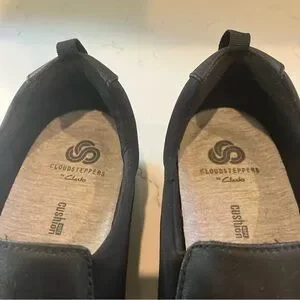 NEW! Clarks Shoes Cloudsteppers Slip On Black Leather Round Toe Loafers 8M