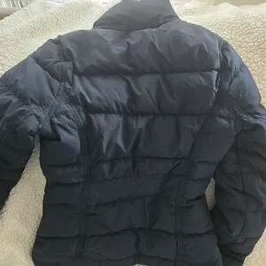 Chic and cozy puffer jacket. Ideal for cold weather. Features a sleek design.