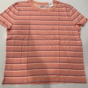 NWT LOFT Coral and White Striped Tee