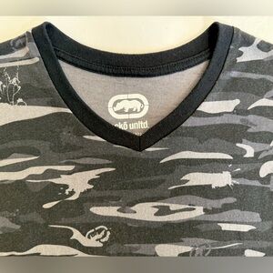 ECKO Unltd Men's Short Sleeve T-Shirt Graphic Tee Gray Black Camo Large V-Neck