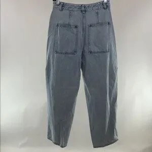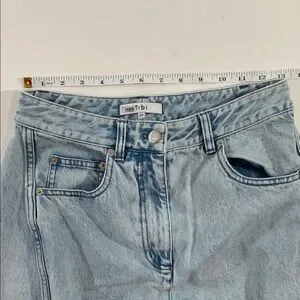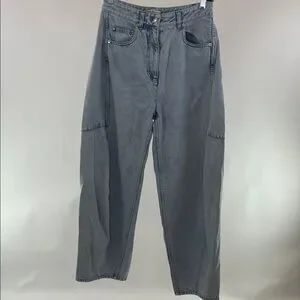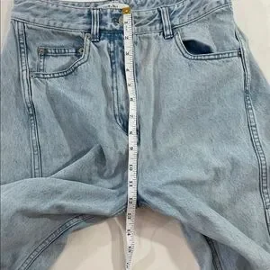 Stylish light blue jeans. Flare and wide leg design. Perfect for casual wear. See pictures for 1 inch rip on back right leg. These are petite.