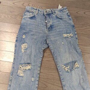 Zara 90s Boyfrirnd light blue wash wide leg high waist ripped jeans -Size 4/6